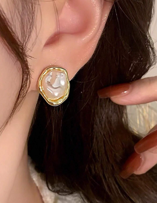 1pair French Asymmetrical Geometric Fashionable Simple Sweet Personalized Faux Pearl Stud Earrings For Women, Daily Wear