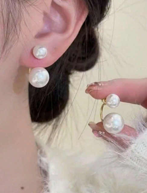 1pair French Luxurious Pearl Stud Earrings Women, Minimalist High-End Design Gift Earrings Suitable For Ladies, Friends